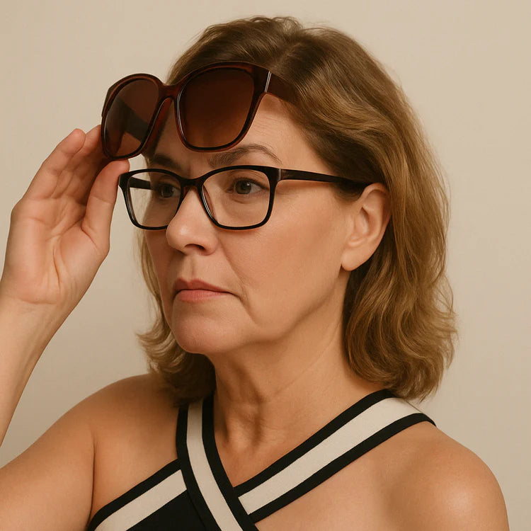 Thanks to their smart design, OptiShade® clip directly over your prescription glasses in just one easy move.