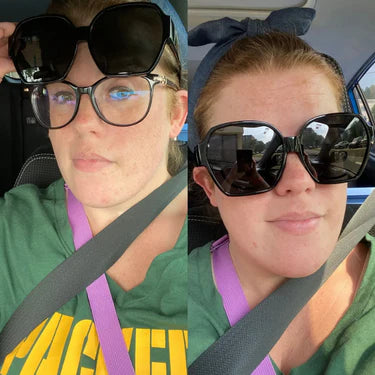 I was a bit hesitant… I thought they’d look too big or not stylish. But honestly? They’re super cute, stay in place, and I wear them all the time in the car. No more juggling two pairs — it’s such a relief.